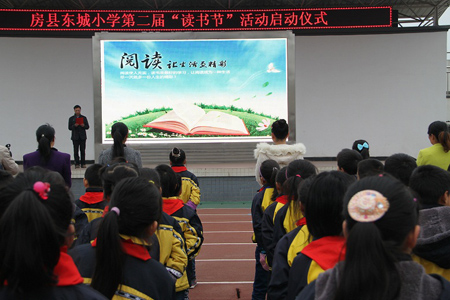 开幕式上,该校校长卢清泉发表了热情洋溢的主题讲话,他以铿锵有力的话语讲解了读书的重要性,列举了诸多古今中外因读书而成名的人,道出了对学生的美好希望,他希望广大师生在校的每一天,与好书交友,与智慧牵手,与大师对话,让读书成为一种习惯;以书籍为伴,以读书为乐,以读书为荣,在书海中吸取聪慧的营养。少先队倡议全体师生“把‘读书是一种需要’变成‘读书是一种乐趣、是一种享受、是一种生活方式’,让师生灵动的心自由的翱翔于‘学海、书山’之间,让读书成为习惯,让学习成为乐趣,让主动学习、自由发展的人文环境成为东城小学师生永远的追求。”