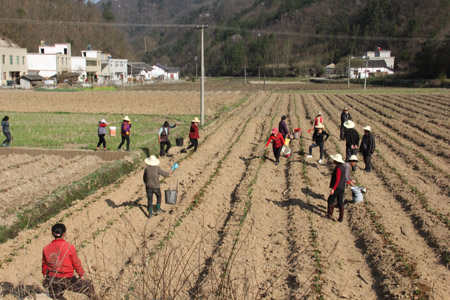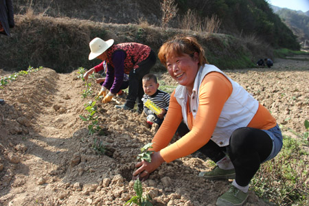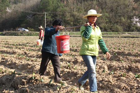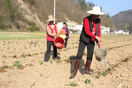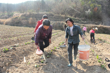 今日房县网讯 记者 高书文 通讯员 赵先华 报道: 3月30日,红塔镇南潭村村民在茶叶基地栽种和灌溉茶树苗。由于群山环抱,气候温润,雨沛雾多,南潭村是生产高香有机茶的优质生态区。据悉,2015年该镇将加大引导和扶持力度,计划新发展无性系茶园200亩、标准化茶园100亩,抚育幼园2000亩,改造老茶园500亩。产业发展预计新扭转土地460亩,带动农村剩余劳动力2000余人。全县目前已发展茶叶12万亩。