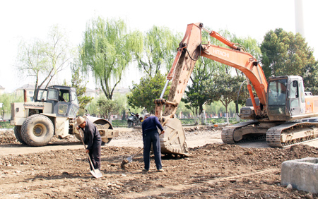 3月31日,半岛湾公园路面铺设正在紧张进行。入春以来,县住建局重点实施保障房建设、城区供水扩容、城市景观绿化等七大项目。目前,城乡建设项目正在稳步向前推进。(赵爱平 张均摄)