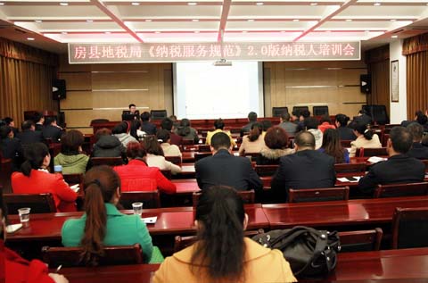 今日房县网讯 记者赵爱平 通讯员邓自勇 报道: 近日,房县地税局纳税人学堂开展《全国税务机关纳税服务规范2.0》培训。全县50余户纳税人和全体地税工作人员参加培训。