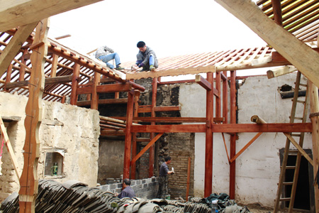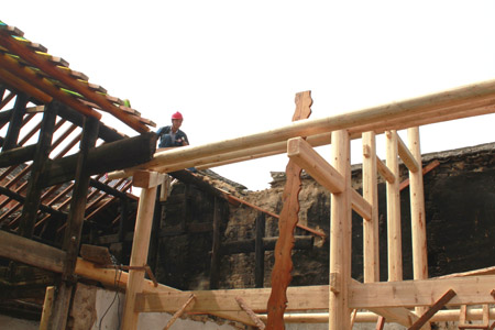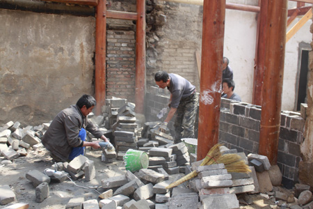 工程按照”政府帮扶、居民自主改造“的原则进行。通过申请,居民可按照明清风格的设计图纸对自家房屋进行翻修,政府每平米补贴300元。现已有60多户老街居民通过申请,正逐户施工中。