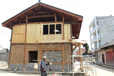 据了解,军店老街建筑多为小天井四合院,以峦石为基,青砖或土胚筑墙,杉木架构,泥瓦盖顶,梁柱交合处皆以榫卯衔接。为最大限度地复原民居风貌,规划设计团队进入每户民居拍照测量,再按其原有结构进行复原设计。施工时,房屋原有的建筑材料全部物尽其用,青砖、泥瓦、窗棱能用的都重新利用,梁柱腐烂老朽的再用新木料代替。整个过程尽量沿用老工艺,不使用钉子。