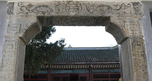 朱氏大门双龙拱帝石雕