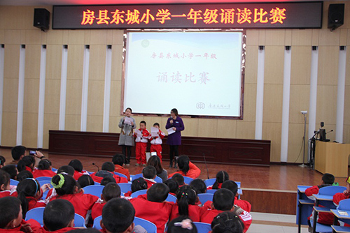 今日房县网讯 通讯员 李英 报道: 为了打造书香校园,营造浓厚的读书氛围,激发学生诵读经典的热情,4月7日下午,东城小学一年级500余名师生在多媒体教室举行了“诵读经典 ”朗诵比赛。60名小选手参加了比赛,他们是从8个班中精心选***的种子选手。