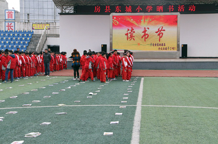 今日房县网讯 通讯员李英报道:4月8日上午,东城小学近3000名学生在操场上开展了“爱惜书本,从我做起”的“晒书爱书”活动。