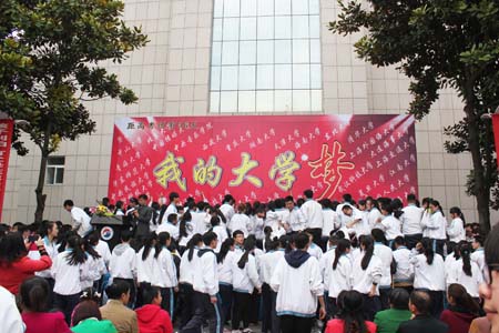 报告历时2个小时。田军老师首先用深沉而富有感染力的语言回顾了中国积贫积弱、任人宰割、山河残破、满目疮痍的近代史,特别是“九一八”事件、南京大屠杀乃至钓鱼岛争端,极大地调动了同学们的爱国热情,也使他们深刻地认识到个人的命运与祖国、民族的命运息息相关,个人的梦想与祖国、民族的未来紧密相联,从而坚定了同学们为实现伟大的中国梦而读书的信念。田军老师还在激情的演讲中穿插经典的故事和形式多样的体验式互动,让同学们认识到排除干扰、坚定信心、全力拼搏的意义,体会到父母、老师对自己的恩情,激发了同学们的感恩之心和决胜高考的壮志豪情。当高三学子们在老师、家长的见证下大声喊出“决胜高考、圆梦大学”的誓言,并在梦想墙上郑重签下自己的名字和向往的大学校名时,会场气氛也被推向了高潮,雷鸣般的掌声在广场上空回荡,经久不息。