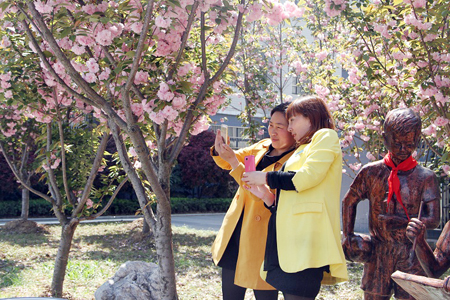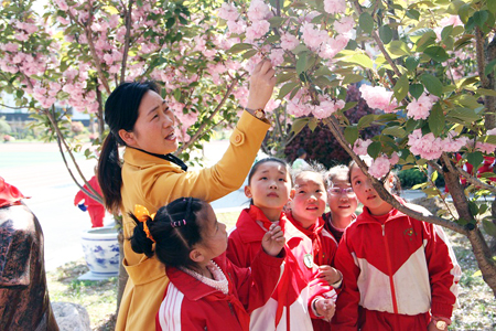 “昨日雪如花,今日花如雪。山樱如美人,红颜易消歇。”近日,随着天气转暖,东城小学校园内的樱花竞相开放,为校园增添无限春色,师生们利用闲暇时间纷纷来到樱花园进行拍照留念。(李英 摄)