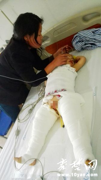 孩子的母亲黄金娥告诉记者,12日上午9时许,丈夫外出不在家,小羽和姐姐小茹在院内玩耍,她用钢筋锅准备了一大盆开水放在屋外的空地上,准备一会儿洗衣服用。一转身的功夫,她突然听到扑通一声,紧接着就听到儿子的哭声和女儿的叫声,转过头一看,小羽一屁股坐进了那一大盆滚烫的开水中,随后便是哇哇大哭。黄金娥见状急忙把小羽的上衣、裤子脱掉,坐着农用四轮车直奔房县人民医院,后因伤情太重,被转到了医疗条件更好的市人民医院。
