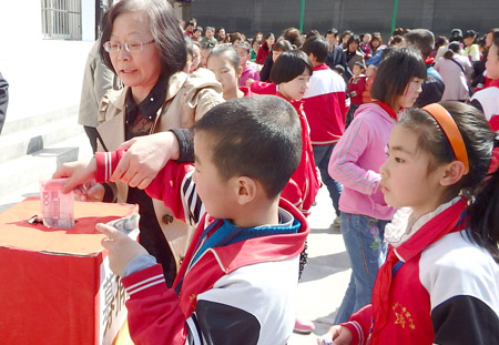 毛圯焓今年6岁,是门古镇杨岔山林场油坊沟村九组人,现在八一希望小学学前二班读书,父母都是农民,靠打临工生活。今年3月份,毛圯焓被武汉同济医院确诊为重度心力衰竭,如果不及时做心脏移植手术的话,随时都有生命危险,父母为给她治病已变卖了家里所有值钱的东西,东挪西借近5万多元钱很快花光后,医院让其出院筹钱做手术,面对20多万元的手术费用,毛圯焓的父母一愁莫展。八一希望小学负责人知道这个情况后,迅速向全校师生发出倡议。募捐现场,该校老师捐款3000多元,700多名学生你5 元、我10元,共捐款6000多元 。