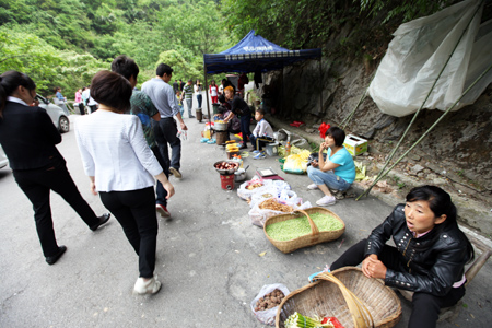 当地村民也趁此机会将自家的野核桃、山竹笋、绞股蓝、甜玉米等野生山珍进行销售,供游客品尝。景区附近的农家特色餐馆更是生意红火,游客在农家饭店吃绿色放心菜,住舒适的农家房,领略淳朴的田园风光。