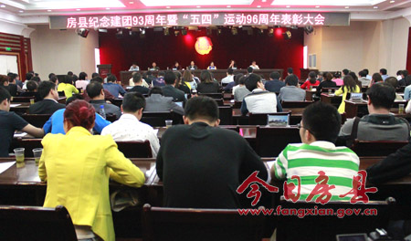 今日房县网讯 记者 高书文 报道:5月 4日,房县召开纪念建团九十三周年暨“五四”运动96周年表彰大会。团市委副书记饶晨,县委副书记张慧彬,县委常委、宣传部长徐锦凤,县人大常委会副主任丁宪章,县政协副主席张延贵出席会议。县委常委、常务副县长王家波主持会议。