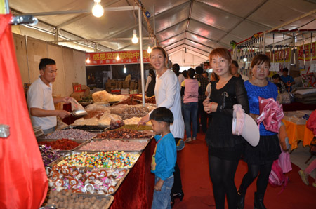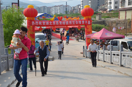 近日,2015首届青峰镇博览会试营业启动。青峰镇是房县东部片区的文化、经济、物流、商贸中心,此次博览会为期10天,共有86个展位,客商多来自武汉、仙桃等地,产品包含服装、土特产、小商品等。(张斌 肖余年子 摄)