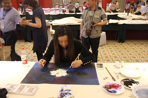 县委常委、宣传部部长徐锦凤到现场观看艺术家创作