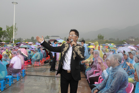 今日房县网讯 记者 赵爱平 吴宏强 高书文 报道: “房前屋后,我的故乡;老坟老酒,转眼新区新房。房前屋后,我的乡恋;两行热泪,化作清水一江………”5月10日, “饮水当思源 感恩进库区”首都艺术家慰问演出在房县诗经文化广场隆重举行。演出中途雨下如注,但首都艺术名家仍坚持冒雨表演,为房县人民献上了一场精彩的文化盛宴。