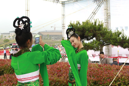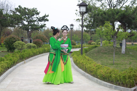 在诗经广场休息的舞蹈演员