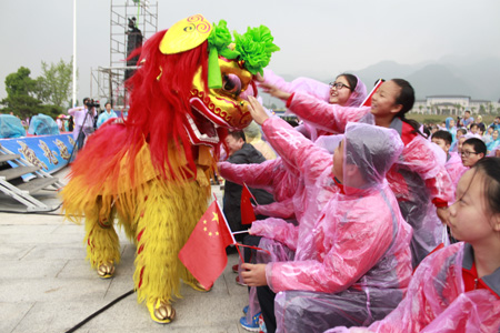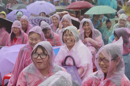 群众冒雨观看,现场气氛热烈