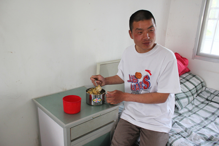 在一边观察时,记者发现财娃和同宿舍的老人相处很融洽,时常笑,精神挺好,说话声也大,还和老人开玩笑,吃饭时候胃口挺好,还喝了点老人提供的酒。不过记者感觉他像十来岁的孩子。