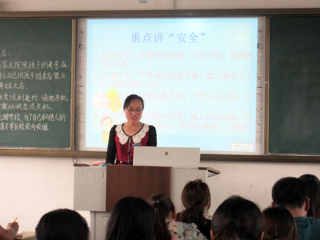 在家长会上,各班班主任向家长介绍了学校在教学质量、育人质量、特长教育等方面所取得的成果;介绍了学校今后的发展前景、办学思路;阐述了学校教学常规管理体系,并且真诚邀请家长监督学校的办学行为;认真分析了目前学校的情况;向家长们提出了一些教育孩子的建议;对如何预防校园安全、交通安全以及如何培养孩子良好的习惯进行了具体讲解;希望家长加强与学校的沟通、加强与子女的沟通,为共同教育好孩子而努力。有些班级还邀请班上成绩优异或进步较大的学生家长现身说法,讲述教育孩子的成功经验。家长们互通有无,气氛活跃。
