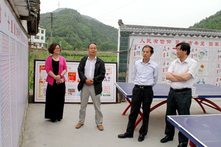 吴世杰一行首先来到土城镇穿山堰村,对农村弘扬社会主义核心价值观、开展道德讲堂、评选“十星级文明户”和村级“好人榜”等工作情况进行了了解。与会人员对穿山堰村因地制宜、因陋就简,加强基层文化阵地建设,以群众喜闻乐见的方式,丰富群众精神文明生活等做法给予了肯定。