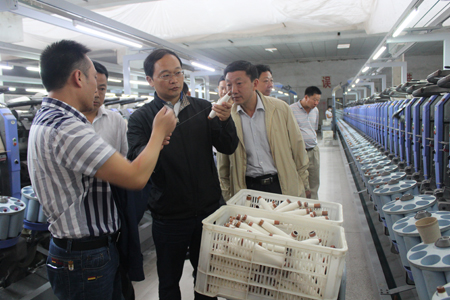 蔡贤忠一行在恒达纺织调研