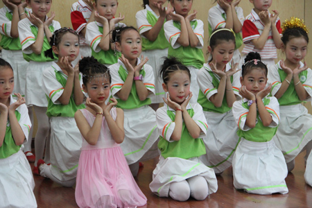 据了解,此次活动的主题为“幸福童年.七彩斑斓”;以单项和集体比赛为活动形式,按照以班为单位排练、年级抽选并汇演、学校集中汇演的程序进行;活动节目选材较广,有歌舞、合唱、器乐、相声(小品)戏曲、诗歌朗诵、大型体操表演等20个节目;这些节目全都由各班组织师生自编、自导、自演,充分增强了该校的艺术氛围,挖掘了不少学生的艺术潜力,给他们提供了展示风采和个性的广阔平台。为了带给大家带来一场精彩、欢乐的汇演盛会,在正常有序的教学活动之余,每个抽选后的节目都在紧锣密鼓地排练着。每天一到排练时间,随处可见孩子们认真投入排练的身影。小演员们在老师的指导下,表现出了极大的热情,他们往往为了一个更加传神的动作、一句更加动听的声音,一次又一次不厌其烦地反复练习,常常累得满头大汗,仍不会有一丝懈怠,不喊一声苦和累,都力争把最好的一面展现出来。相信通过全体教师和同学们的共同努力,能够让孩子们在属于自己的节日里展现自己的才艺,释放自己的欢乐,放飞自己的梦想。