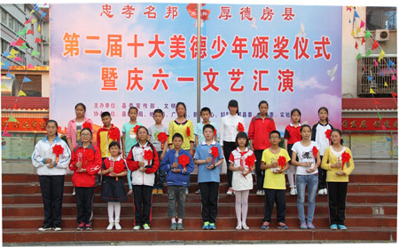 今日房县网讯 记者 王玮 通讯员 龚娟 报道:“见贤思齐,崇德向善!让我们从小做起,做一个学习好、品德更好的人”,在28日举行的第二届十大美德少年颁奖仪式上,荣获美德少年称号的县实验小学10岁小学生陈思奇在代表发言中向全县青少年发起了倡议。