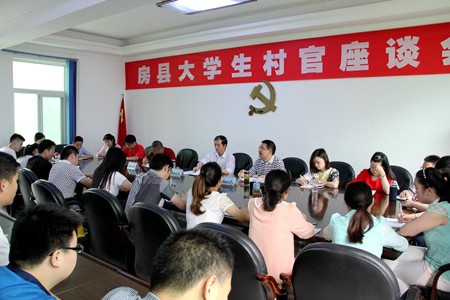 座谈会上,大学生村官段晓攀就如何做好本职工作时说到:“增强融入基层的毅力,多学习、多锻炼”。放弃高薪回家创业的吕相龙信心满满的说到:“现在我已经购进了1000只鸡苗,种了800颗枣树,效益好了再扩大规模,带领村民一起干”。针对旅游产业发展,况建璋讲到:“要以互联网的思维,站在游客的角度思考问题,塑造大旅游品牌,搭建便捷服务平台”。袁海坤结合自己做电商的经验谈到:“房县的地产品物美价廉,就是要在宣传、产品包装上下功夫,通过电商销售发展前景很好。”