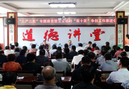 该镇党委书记付必久强调,“双十星”争创工作要做到严格按程序不走过场,党员干部带头争创“十星”,承诺要实实在在,具体到办那几件实事,把帮扶贫困户作为重点,党支部要围绕年初承诺搞好基础设施建设,结合“五城联创”活动,干老百姓受益的实事;通过争创“双十星”树正气压住歪风邪气、调动党员群众的积极性,得民心正民风,树典型、把党的先进性展现出来,凝聚党员和群众的正能量,营造安居乐业的发展环境。