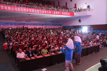 梦幻的蓝色世界,奇妙的精灵村,神秘的魔法城堡和神奇的蓝水晶,给小朋友们带来全新的视听感受,演员与在场小朋友亲切互动,不断的将现场气氛推向高潮,深深吸引了每位观众朋友。整个现场座无虚席。