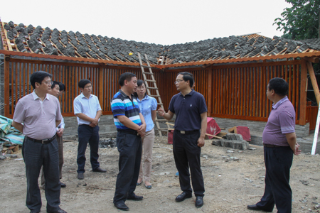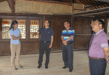 军店老街始建于唐朝,兴于明末清初,鼎盛至清末。老街上有明清传统风格建筑200余处,幽深的街道和小天井四合院,尽显明清古韵。2014年,下店子村入选第三批“中国传统村落”名录,同年,我县启动“一街一村”项目建设。作为“一街一村”项目中的“一街”,军店老街修复改造工程遵循“修旧如旧、仿古如古”的原则,由中国乡建院专家设计团队深入每一家农户进行实地勘察,并结合各户实际,为每一户分别设计了具体的规划设计方案。截至目前,各项改造工作在有序推进,修复改造后的实景效果即将呈现在人们眼前。蔡贤忠一行沿着规划后的老街入口前行,每到一处民居前,蔡贤忠都停下询问保护和修复改造情况。在一处即将修复改造竣工的民居,蔡贤忠走上阁楼,查看改造效果,并就如何利用开发与部门、乡镇负责人进行探讨。