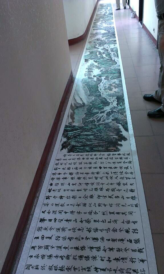 今日房县网讯 通讯员 张立林 报道: 近日,房县文联老年诗书画影家协会雷炳科的《野人谷神游图》长卷,创作、装裱完成。此卷长17米,宽0.8米,创作时常一年零二个月。长卷通过国画写意形式,反映房县野人谷优美的山水风景。画面主次分明,远近虚实处理恰到好处。此长卷乃《千里房县神农游图》(雷炳科)、《房陵古城图》(张宗权)后又一反映房县风貌的国画长卷。(由于画卷太长,全景照片只能分段拍摄后再进行合成,合成照片将于近日发布。)