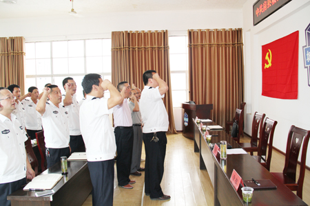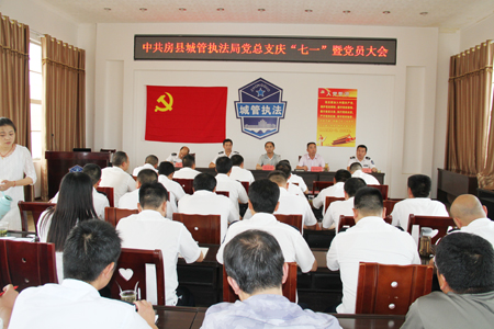 24日,房县城市综合管理执法局40多名新老党员举行了入党誓词宣誓仪式。该局在庆“七一”活动中,组织党员开展了学习党章、讲党课、重温入党誓词、唱红歌、召开党员民主生活会等活动。 (赵爱平 邱浩摄)