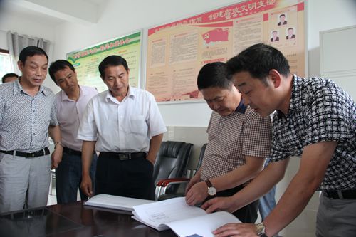 陈德汉一行在白鹤镇长龙村察看村残协档案