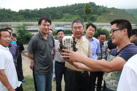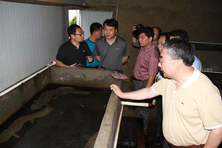 吴宝新一行现场参观大鲵养殖基地