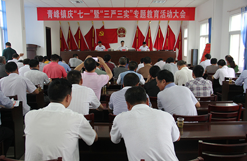 大会现场,青峰镇党委书记代新武带领全体党员干部重温了《中国共产党入党誓词》,在高昂的入党宣言中,更加增强了所有党员干部的光荣感、使命感,进一步激发党员干部的先锋模范作用和工作热情。县委副书记张慧彬就“三严三实”工作主题为大家上了一节党课,借助“七一”这个神圣光辉的节日,告诉大家要坚守党性,不忘宣言,时刻为党的事业做出牺牲。同时,要深刻领会“三严三实”的丰富内涵和现实意义。