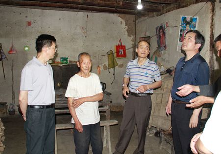陈家义一行在老党员何立忠家座谈