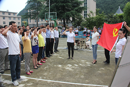 野人谷镇党委书记王玲带领镇直机关和部分村党员代表重温入党誓词