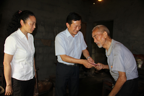 野人谷镇桥上村有56年党龄的老党员王道明,早年因事故失去了儿子,老伴也去世后独自一人居住,生活十分困难;姚天国同老人促膝谈心,亲切交流,对老人的身体生活状况进行了深入细致的询问,并叮嘱随行的镇、村干部要多到老人家看看,关心老人生活及时帮老人解决困难,让老人安享晚年,同时感谢王道明为房县发展所做出的贡献。