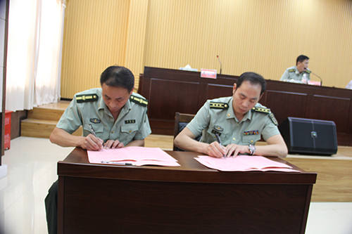 县委常委、人武部长代表县人武部与各乡镇武装部长签订责任书