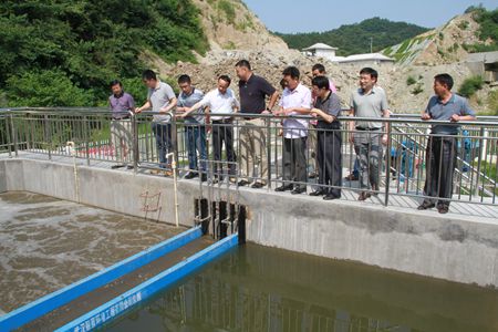 检查组一行察看窑淮镇污水处理厂运转情况