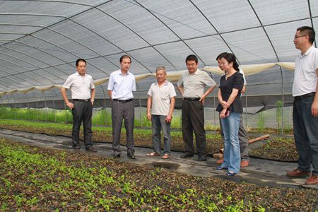 柯大成一行在窑淮镇铺沟村了解茶叶育苗基地建设