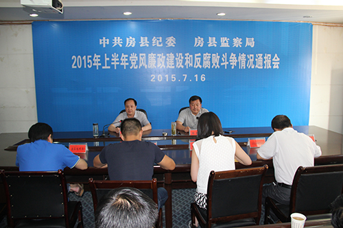 今日房县网讯 记者 陈锐 通讯员 戴克华 报道: 7月16日,我县召开2015年上半年党风廉政建设和反腐败斗争情况通报会。县政府党组成员、纪委监察局局长张光斌就今年上半年我县党风廉政建设和反腐败工作向部分党员代表、行风政风监察员作了通报,进一步提高党风廉政建设和反腐败工作社会知晓率。