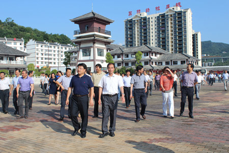 柯大成一行在陕西省平利县县委书记郑小东等领导陪同下参观建设中的长安镇旅游综合服务区