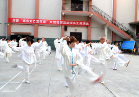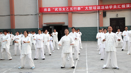今日房县网讯 记者 高书文 通讯员 刘欢 报道: 7月16日,由120名首期武当太乙五行拳参训学员参与的结业汇演在县文体局举行。至此,为期10天的武当太乙五行拳大型培训活动圆满结束。