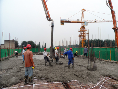 21日,天明小学2号教学楼主体浇注混凝土工程建设正在紧张施工。为有效推进工程建设,该校安排专门人员监管,在确保建设安全、严格工程质量的前提下限时完成,力争在开学前完成主体,10月1日投入使用。(郑云平摄)