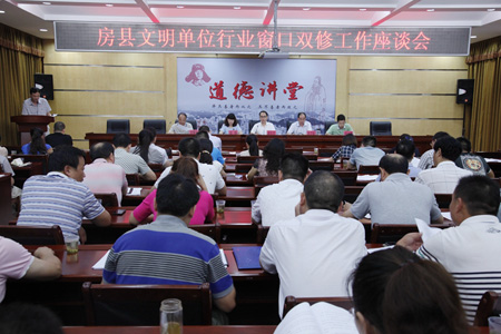座谈会上,全国文明单位房县国税局、省级文明单位房县地税局进行了典型发言,12个行业窗口单位做了表态发言。