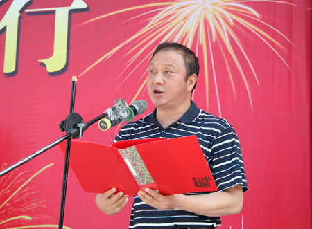 高明哲与随州农商银行副行长王爱明一起为房县楚农商村镇银行揭牌