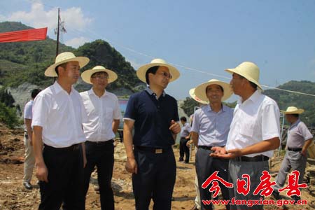 会前,蔡贤忠一行冒着高温酷暑先后来到大木厂镇安阳沟村泰山庙集中安置点、姚坪乡庆口村杜家坡及杨家湾集中安置点,实地查看房县大中型水库移民避险解困项目进展情况。在庆口村杜家坡集中安置点,挖掘机等施工机械正在平整场地,工作人员正按照设计图纸进行测量。据了解,房县以大中型水库移民避险解困项目为抓手,按照“统一规划、作用互补,渠道不乱、用途不变,各负其责、各记其功、形成合力“的原则,整合各类项目资金突破2亿元。第一期计划在大木厂镇安阳沟村,姚坪乡屈家坡村、庆口村安置移民609户2155人。“安置点能安置多少移民?”“公共设施如何配套?”在每个安置点,蔡贤忠都与项目负责人、镇乡村干部深入交流,详细询问安置点的规划设计等工作,了解安置点建设、移民意愿等情况。“就要住上新房子了,马上可以过上好日子!”姚坪乡庆口村2组肖大爷拉着蔡贤忠的手高兴的说。蔡贤忠接过话头说:“是啊,不仅是让大家住上新房,还要通过大搬迁,改变生产生活条件,实现脱贫致富。”