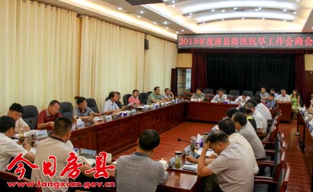 今日房县网讯 记者 吴宏强 通讯员 吴君 报道: 10日,县委书记柯大成、县长蔡贤忠主持召开2015年度防汛抗旱工作会商会,听取气象水文预测预报,研判当前防汛形势,部署防汛工作。柯大成、蔡贤忠强调,当前是全县防汛工作的关键时期,各乡镇、县直各部门要把责任挺在前面,防止麻痹大意,不可丝毫懈怠,将防汛抗旱责任制落实到位,打胜打好防汛这场硬仗,确保全县安全度汛。县委副书记张慧彬,县委常委、常务副县长王家波,县委常委、武装部长邵吉民,副县长牟俊仪,县政府党组成员曾立福、董诠闻及县防汛抗旱指挥部成员单位负责人参加会议。
