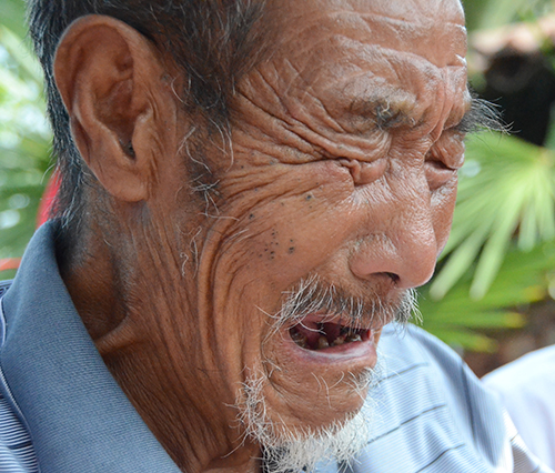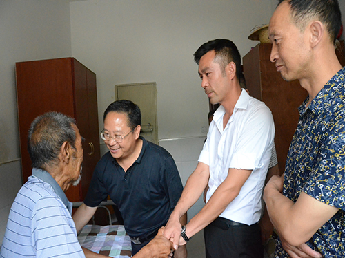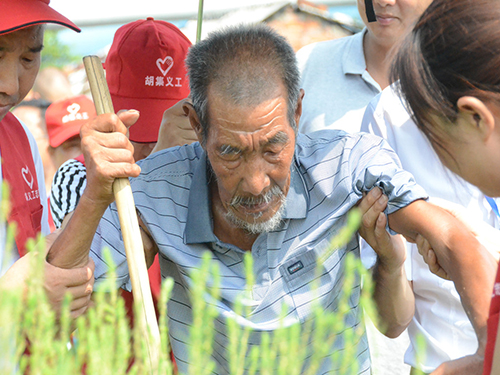 “你不是王志明吗,还记得你今年多大年龄吧?”“我是王志明,我79岁,是房县安阳乡七里村的。”在房县寻人小组成员和当地义工的搀扶下,老人终于走出了摇摇欲坠的小屋子。可能是长时间缺乏与人交流,老人一路都在呻吟。就要离开了,年近八旬的王志明老人向昔日帮助他救助他的邻居、义工以及接他回家的人跪下了,一行老泪顺着面颊流淌下来……